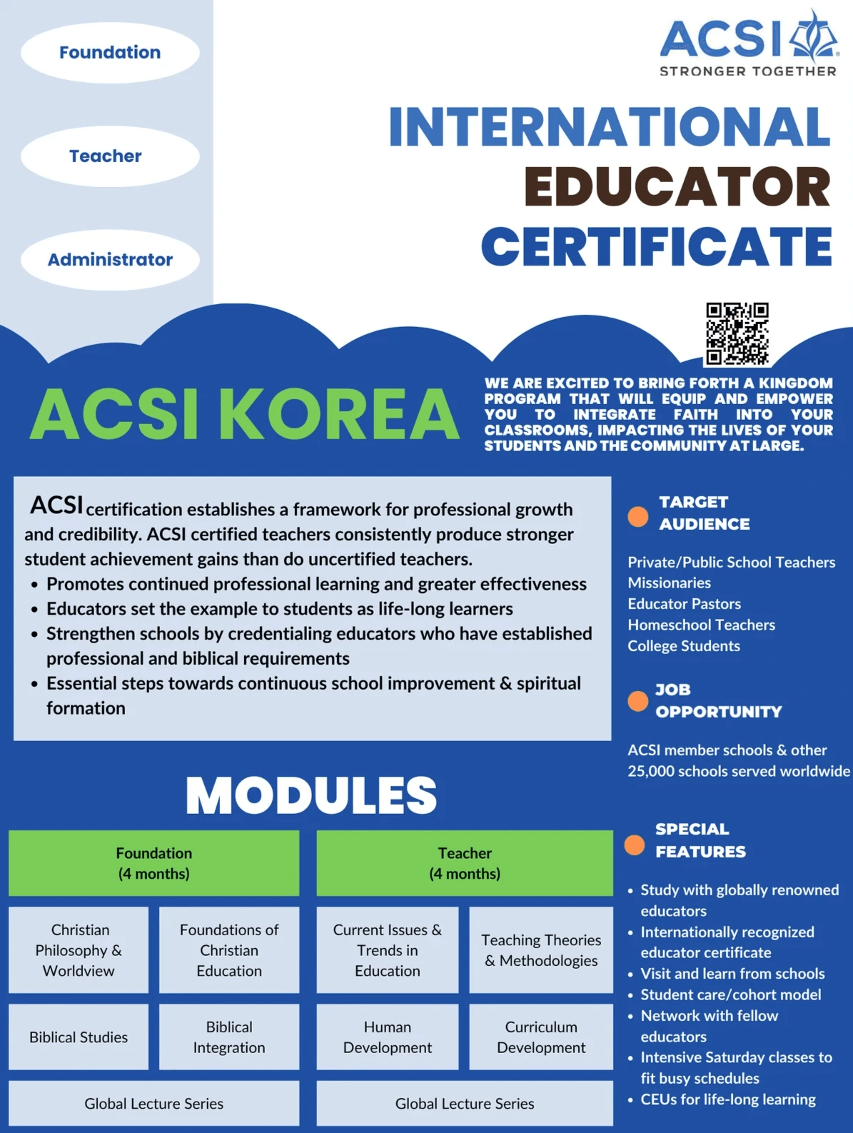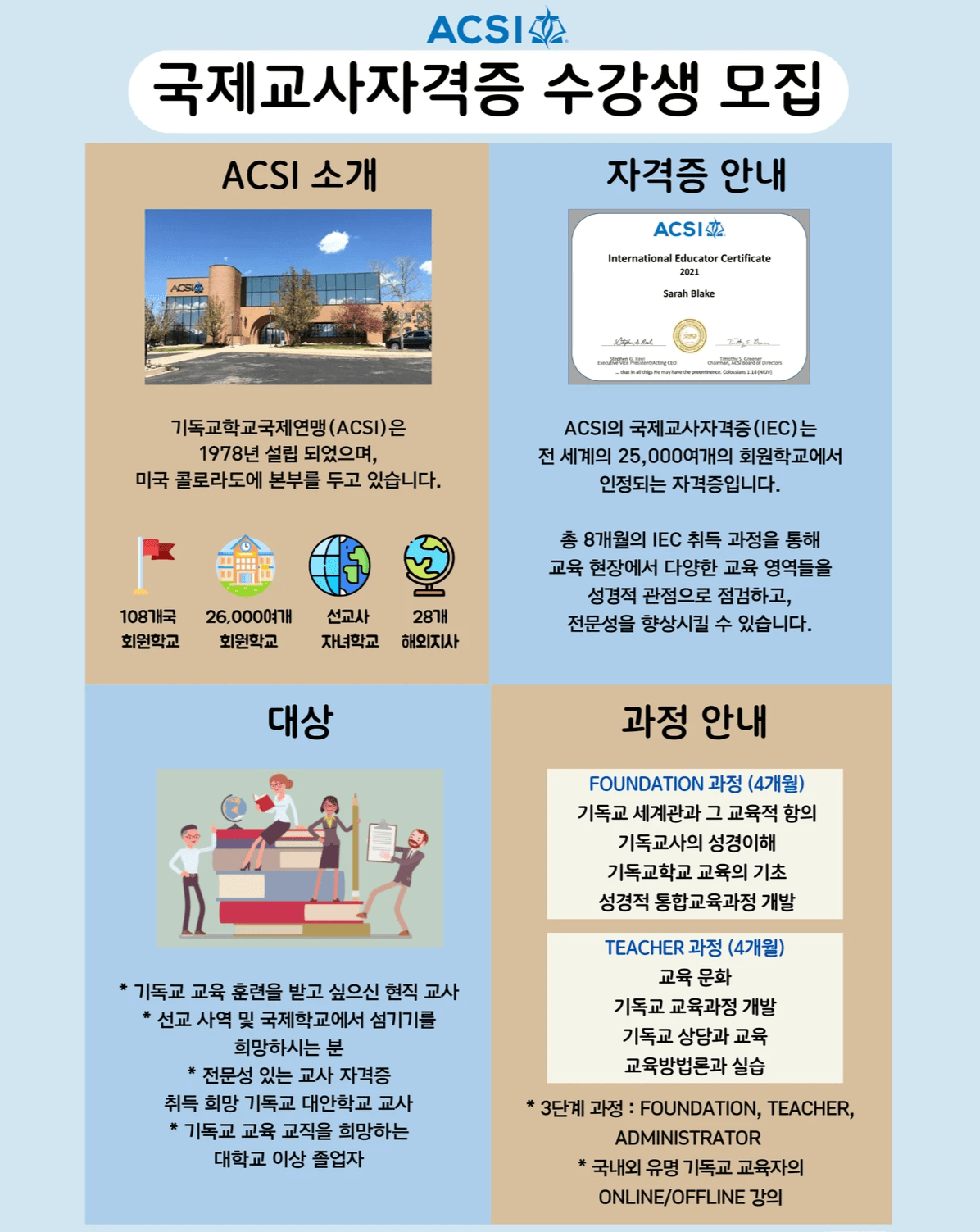 ACSI East Asia (Korea) 교사 자격증 특징